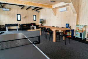 Cieszymy się, że tutaj jesteś. Mamy nadzieję, że znajdziesz tutaj swój wymarzony domek. Zapraszamy do korzystania z naszego nowego budynku rekreacyjnego dostępnego dla wszystkich naszych Gości: piłkarzyki i tenis stołowy drewniane domki dla lalek/ warsztat/tory wyścigowe/kuchnia, gry planszowe…